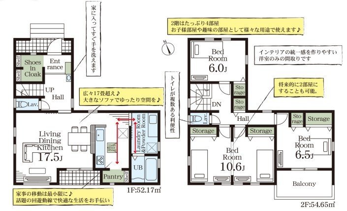 シューズクロークやキッチンパントリー、廊下収納など収納多数ある間取りです。