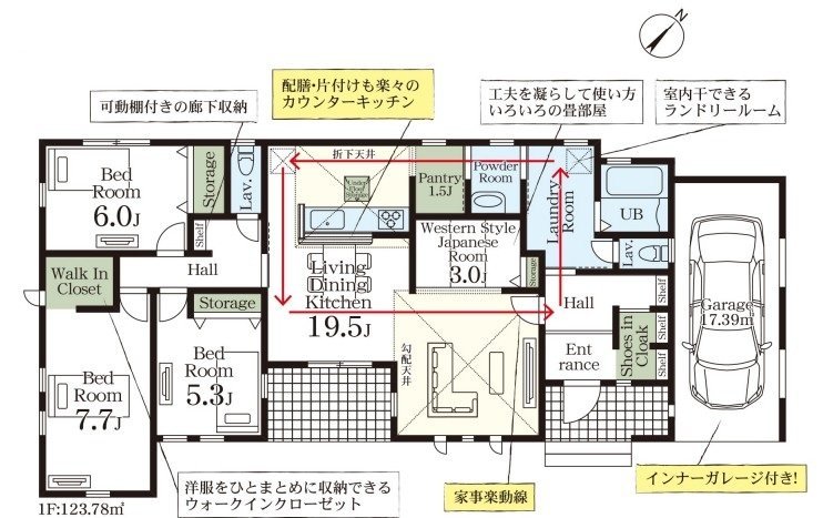インナーガレージ付きの平屋新築住宅!